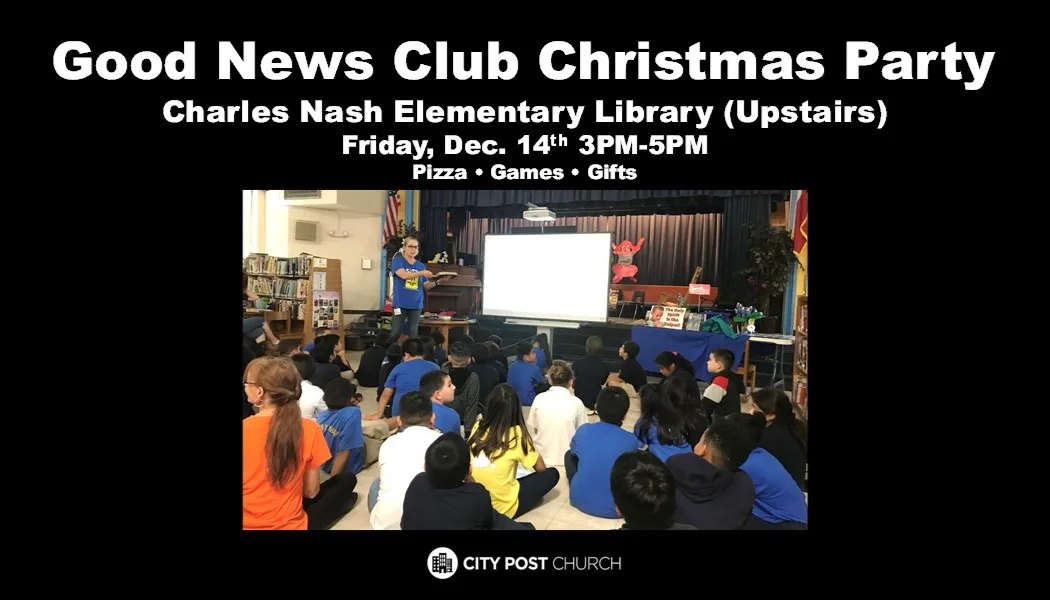 Join us as we celebrate with the Good News Club at Charles Nash Elementary School. City Post will be providing Pizza, Drinks, and gifts. Meeting in Library upstairs.